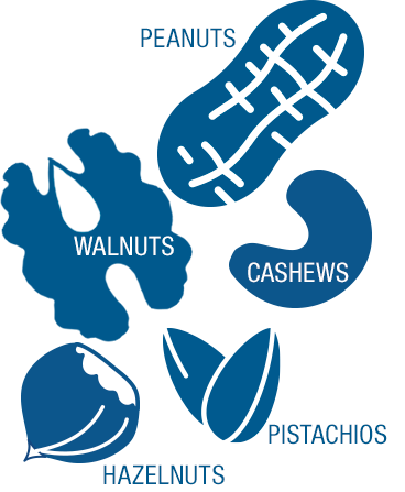 Sizes: Colossal (Less than 18 nuts per once), Extra Large (18-20), Large (21-25), Medium (26-30), and Small (More than 30).